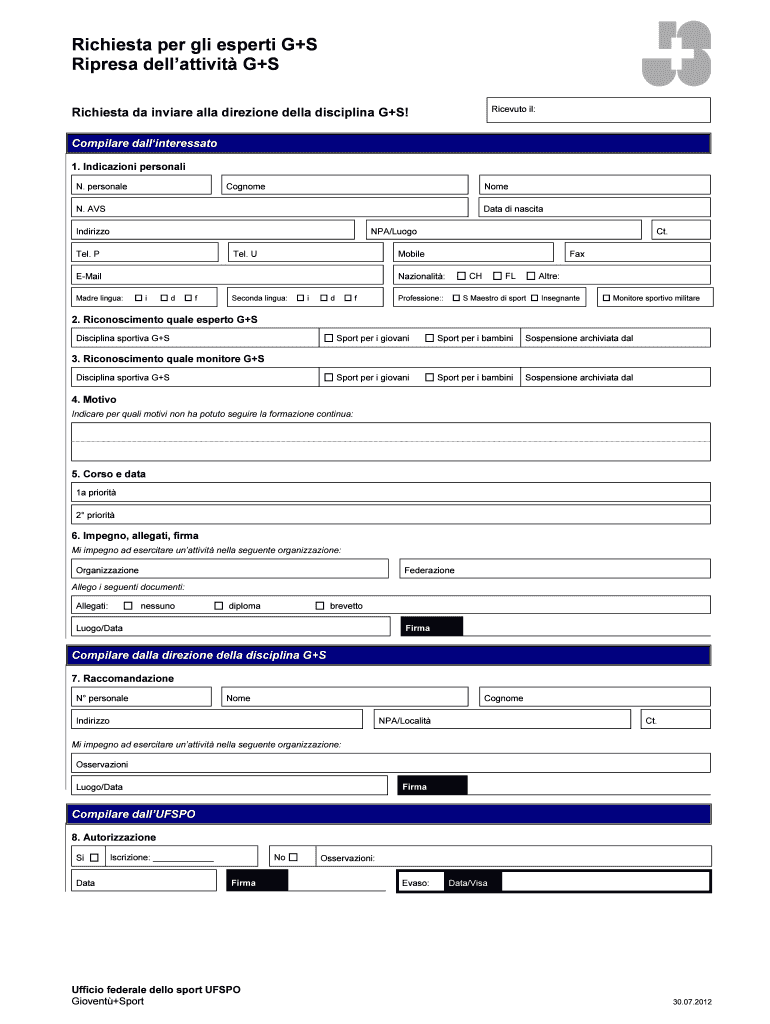 Ottieni il gratuito Richiesta per gli esperti GS Ripresa dell attivita GS - jugendundsport