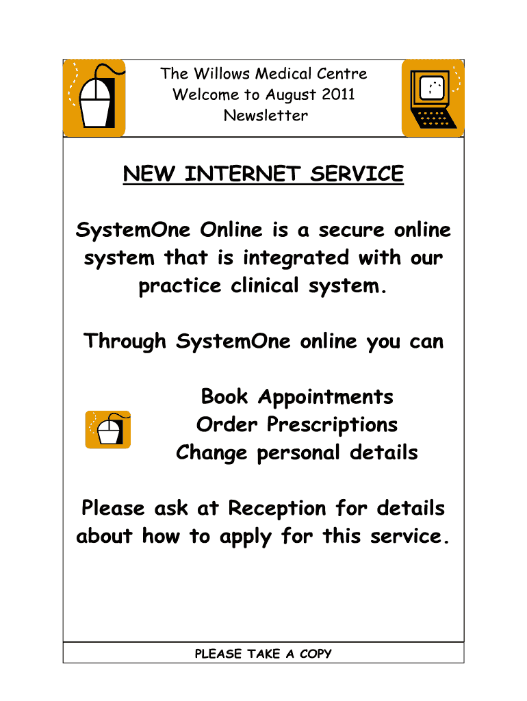 Get the free NEW INTERNET SERVICE SystemOne Online is a secure online - thewillowsmc co