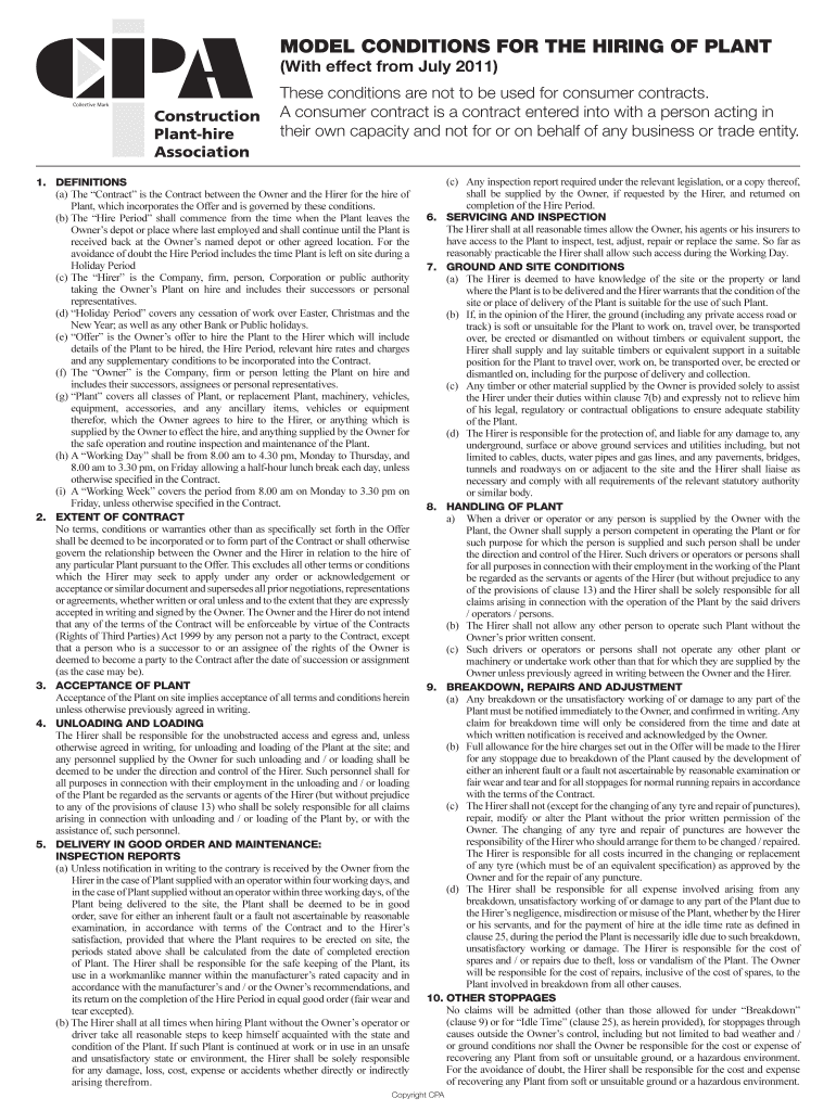MODEL CONDITIONS FOR THE HIRING OF PLANT