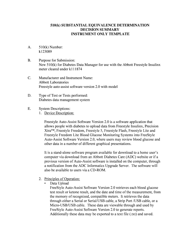Get the free New 510(k) for Diabetes Data Manager for use with the Abbott Freestyle Insulinx