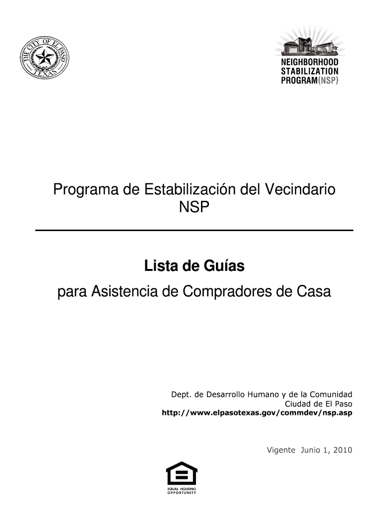 Program de Estabilizacin del Vecindario NSW List de Guas para Asistencia de Compares DE Casey Dept. de Desarrollo Human y de la Communized Ciudad de El Paso http://www.elpasotexas.gov/commdev/nsp.asp