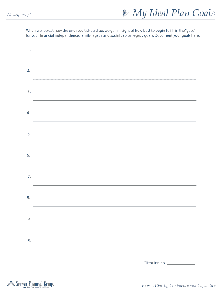 Get the free We help people My Ideal Plan Goals - Schwan Financial Group