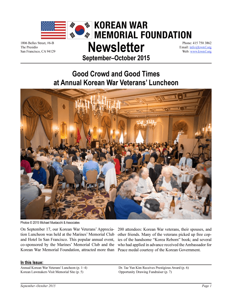 1806 Belles Street, #6B The Presidio San Francisco, CA 94129 Newsletter September October 2015 Phone: 415 750 3862 Email: info KMF.org Web: www.kwmf.org Good Crowd and Good Times at Annual Korean