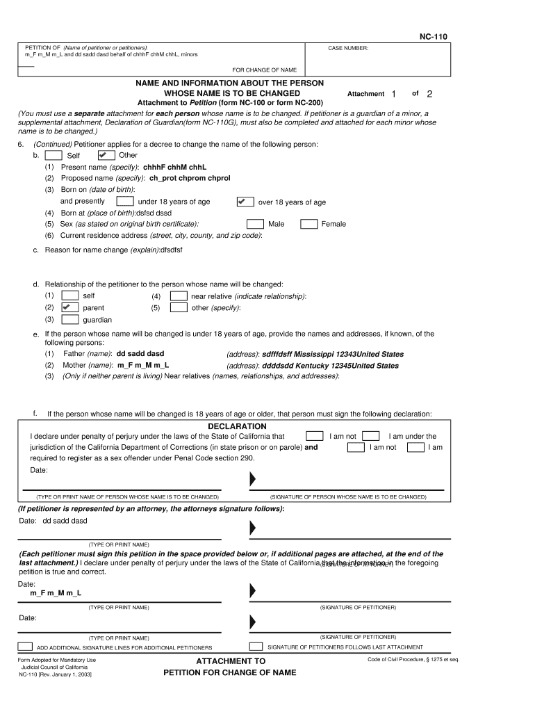 Get the free Nc-110 bnameb and information about the person whose bnameb is to be bb