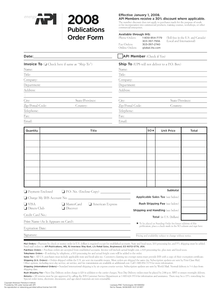 Specification for Oil and Gas Separators API SPECIFICATION 12J EIGHTH EDITION, OCTOBER 2008 EFFECTIVE DATE: APRIL 1, 2009 ,,,,, ,, ,,, ,,,,, ,, ,, Copyright American Petroleum Institute Provided by