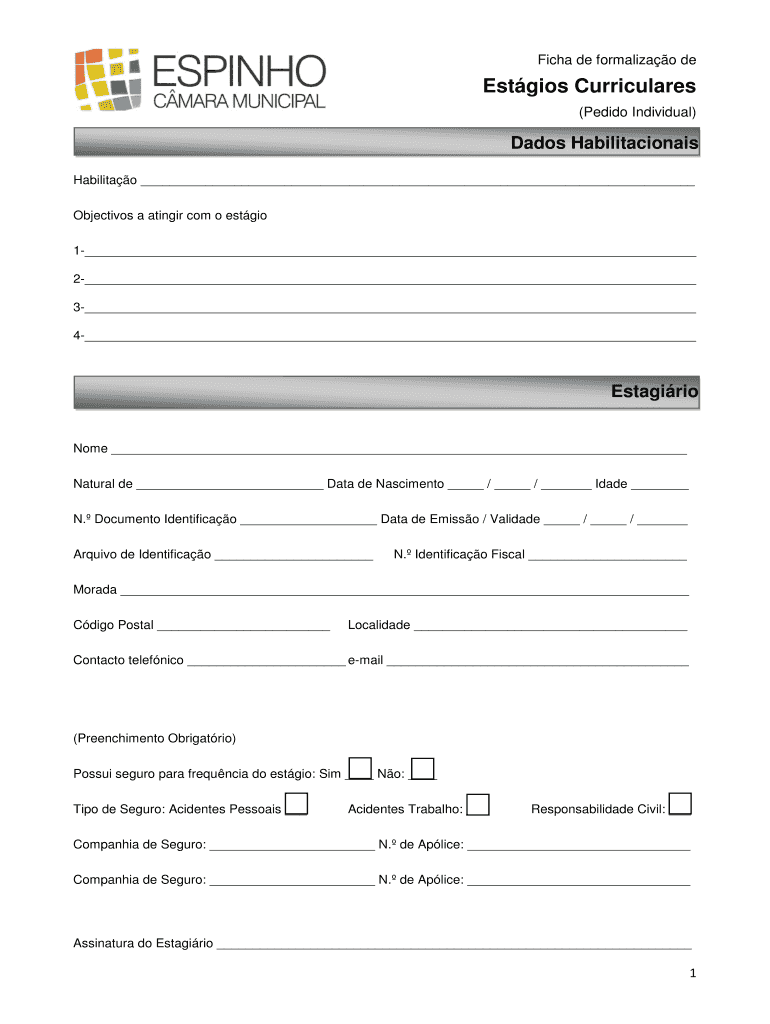 Obtenha o gratuito Ficha de formalizao de Estgios Curriculares - portal cm-espinho