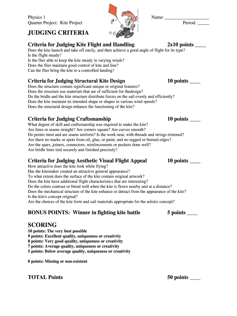 Physics 1 Name: Quarter Project: Kite Project Period: JUDGING CRITERIA for Judging Kite Flight and Handling 2×10 points