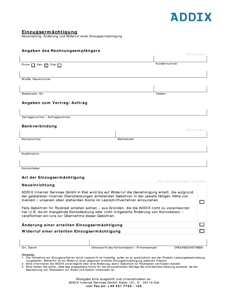 Einzugsermchtigung Neuerteilung, during UND Wider anger Einzugsermchtigung Annabel DES Rechnungsempfngers Firm Herr Bitter Allen Kundennummer Frau Straw, Hausnummer Postnatal, ORT Telephone Annabel