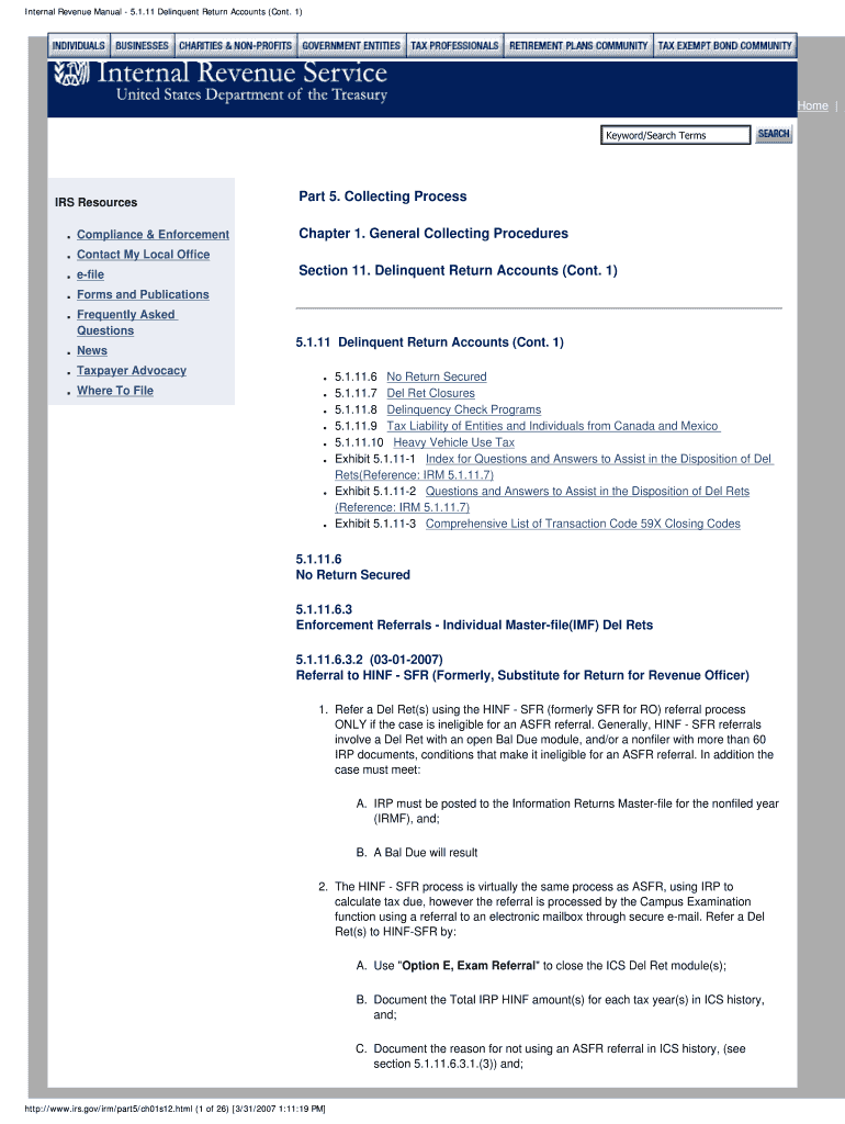 Get the free IRS Delinquent Return Accounts Guidance