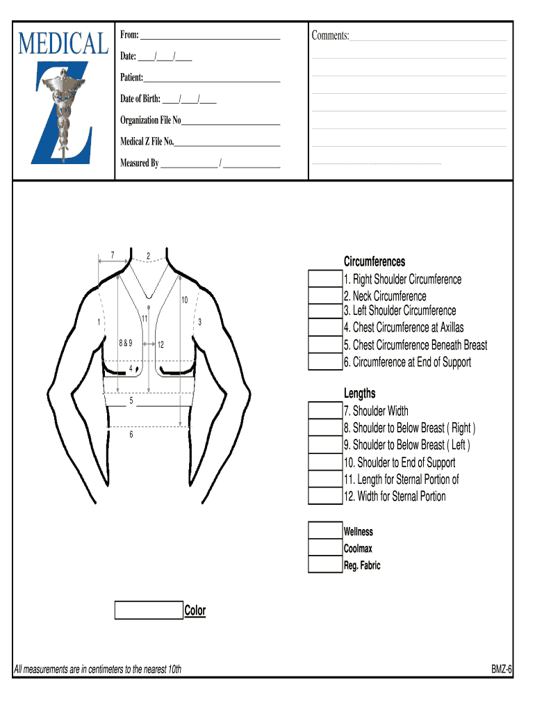 From: Date: / / Patient: Date of Birth: / / Organization File No Medical Z File No. Measured By / 7 2 10 11 1 8&9 3 12 4 Comments: Circumferences 1. Right Shoulder Circumference 2. Neck Circumference