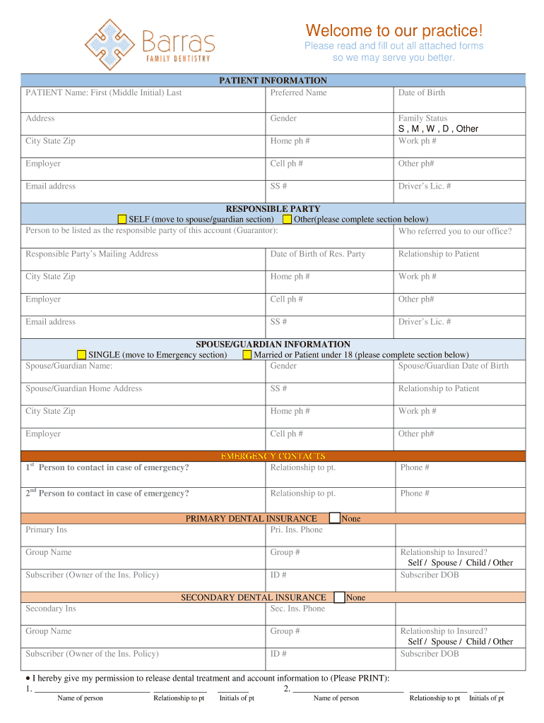 Get the free New Patient Forms - Barras Family Dentistry