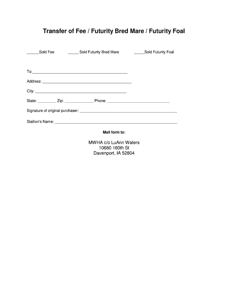Get the free Transfer of Fee Futurity Bred Mare Futurity Foal
