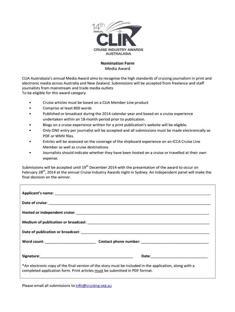 Get the free Nomination Form Media Award - cruising org