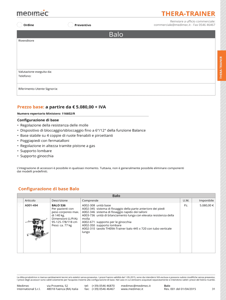 Ottieni il gratuito Balo THERA-TRAINER - Medimec International srl - medimec
