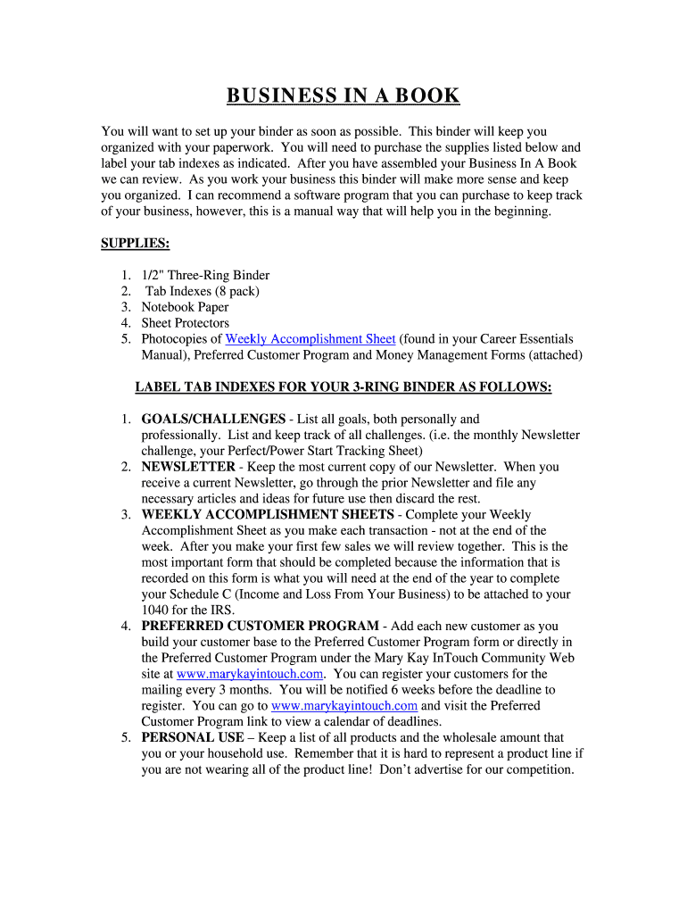 organized with your paperwork. You will need to purchase the supplies listed below and