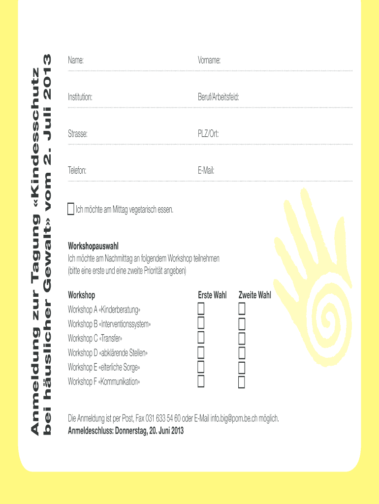 Kindesschutz BEI publisher Dealt Abschlussveranstaltung sum gleichnamigen Pilotprojekt DES Cantons Bern Mainstay, 2. July 2013, 9.00 bis 17.00 UHF University Bern, A 003, Schanzeneckstrasse 1, 3012