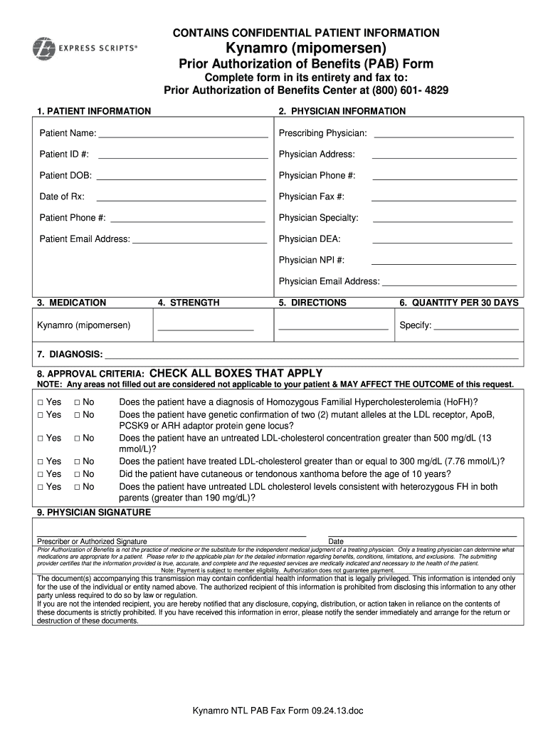Get the free Kynamro Prior Authorization Form