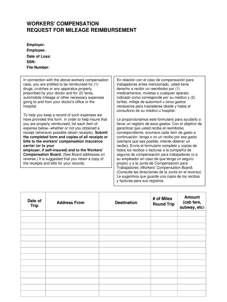 Get the free Workers' Compensation Mileage Reimbursement Form