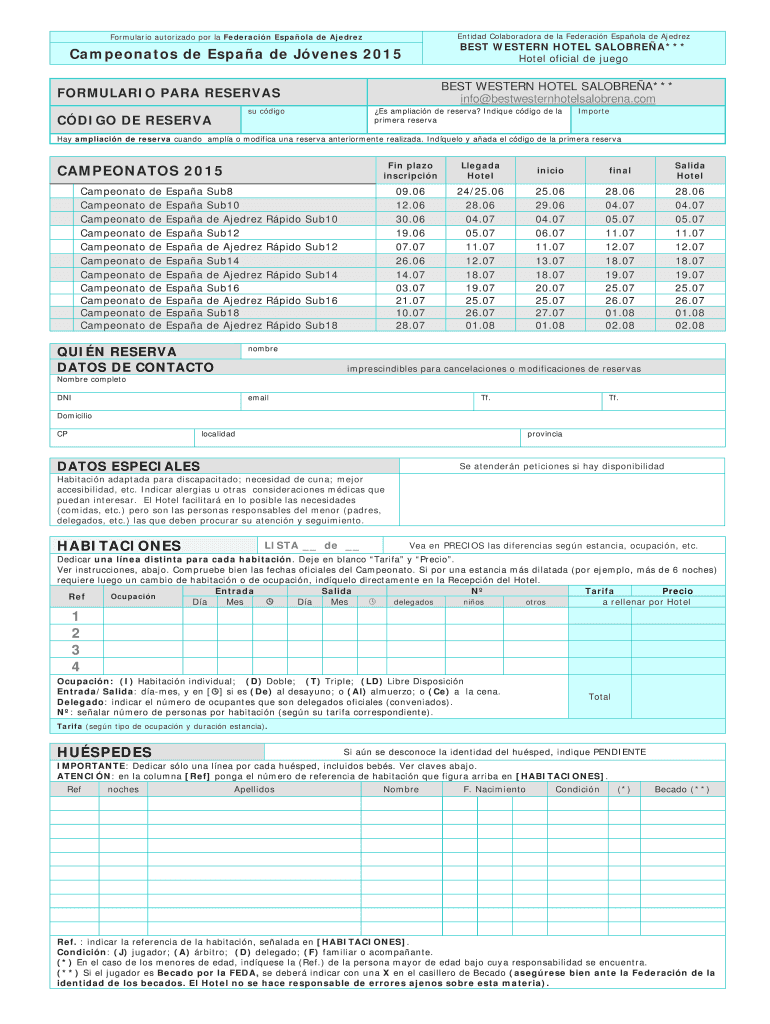 Obtener el gratis Formulario autorizado por la Federacin Espaola de Ajedrez - facv