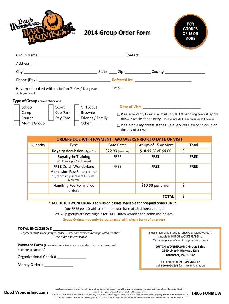 Get the free FOR GROUPS OF 15 OR MORE 2014 Group Order Form Group Name Contact Address City State...
