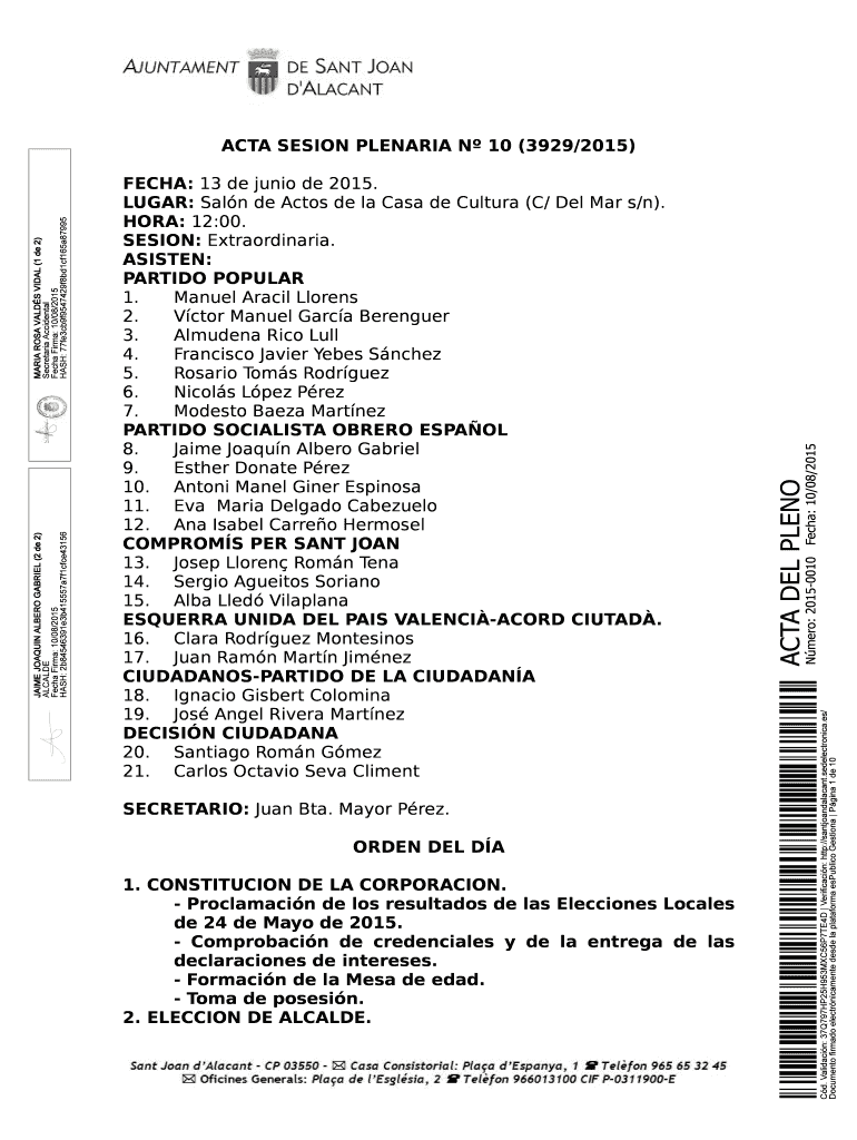 Obtener el gratis ACTA SESION PLENARIA N 10 (3929/2015) - Ajuntament de Sant ... - santjoandalacant
