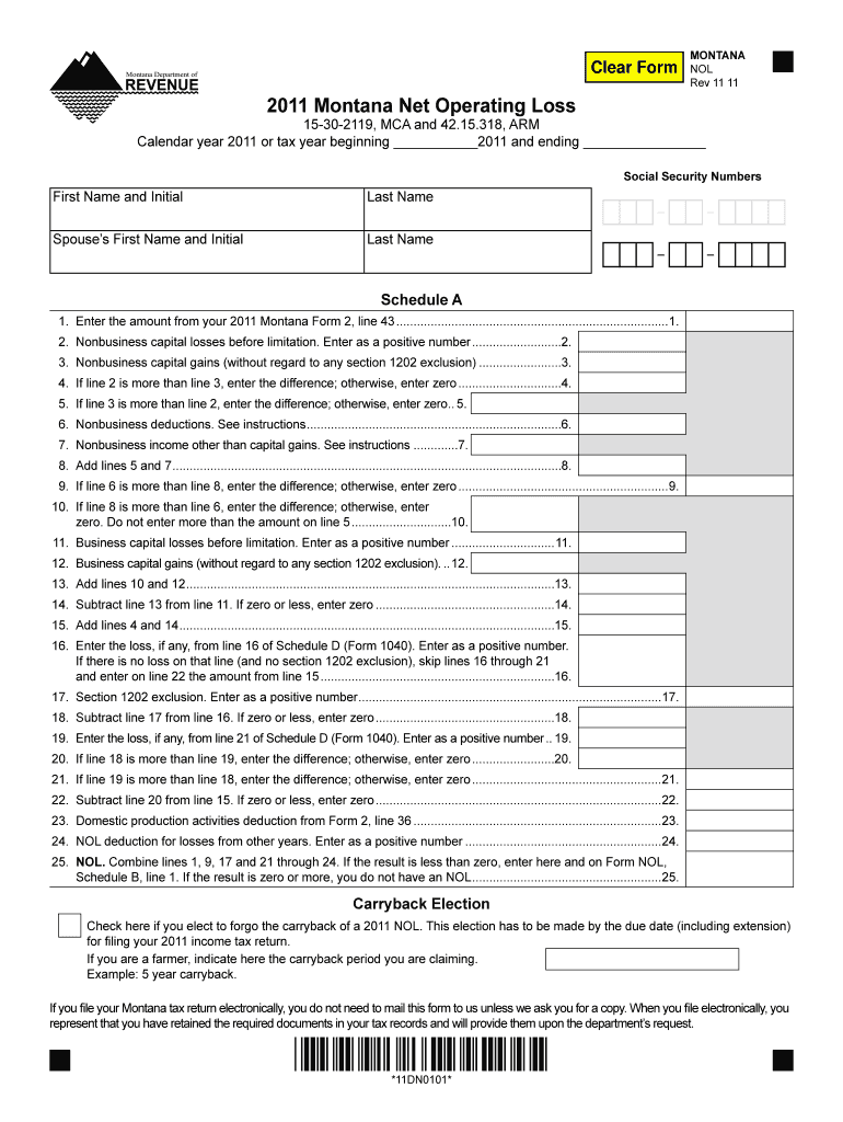 How to fill out the montana net operating loss