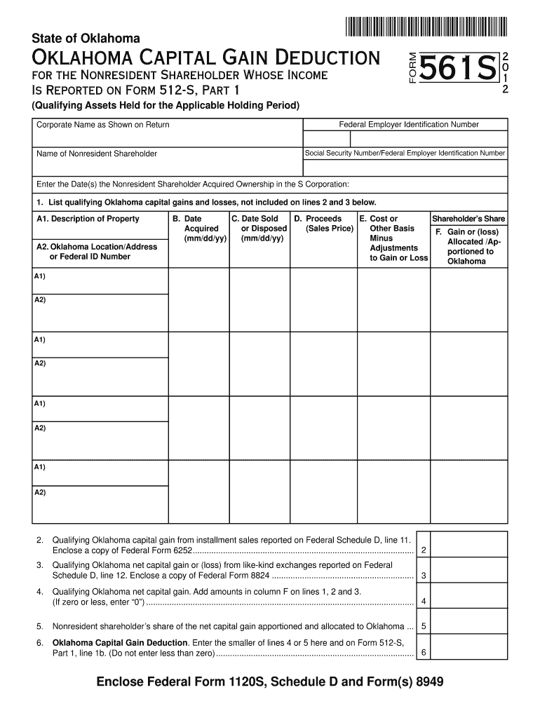 Get the free Oklahoma Capital Gain Deduction Form 561S