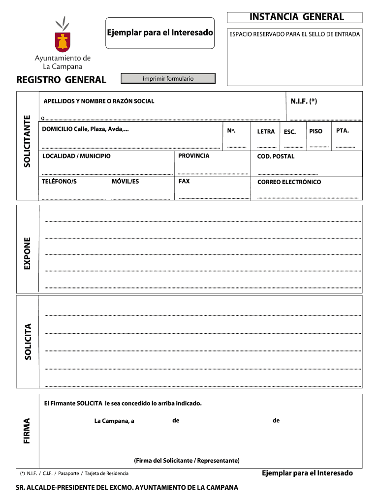 Get the free Registro general instancia general - La Campana - lacampana
