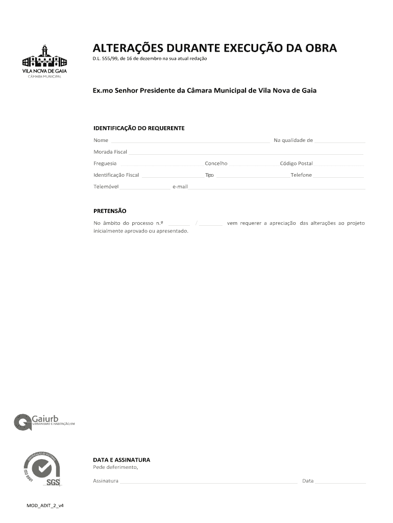 Obtenha o gratuito ALTERAES DURANTE EXECUO DA OBRA PEDIDO DE INFORMAO - gaiurb