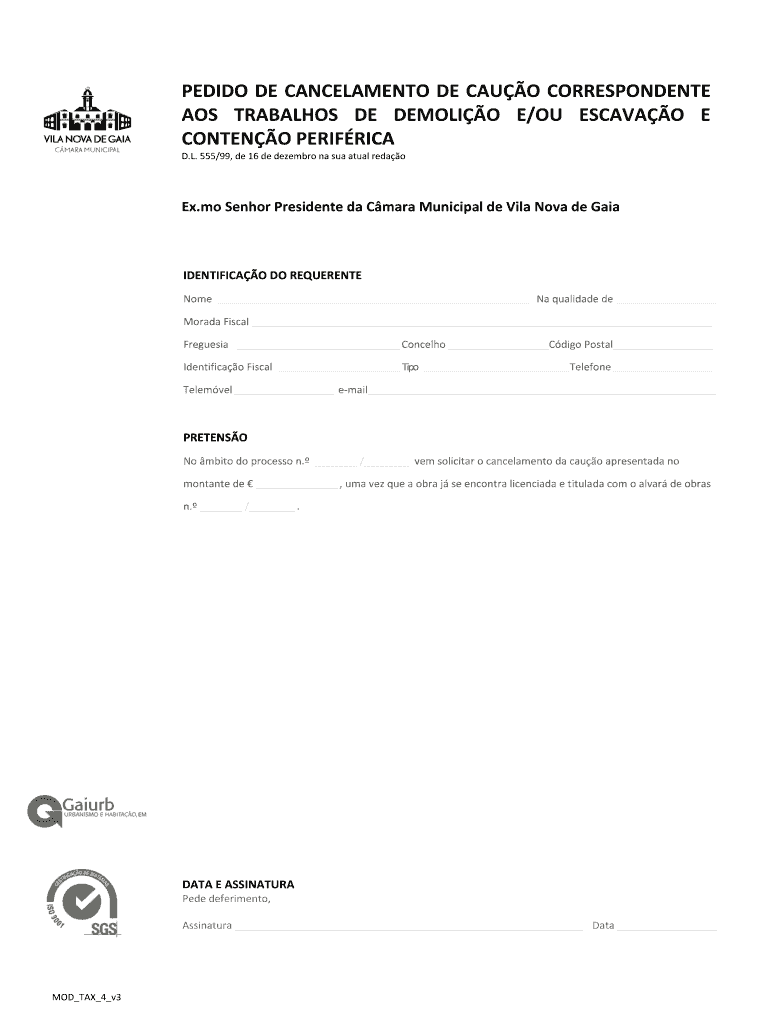Get the free Pedido de informa o pr via pedido de cancelamento de ... - Gaiurb - gaiurb