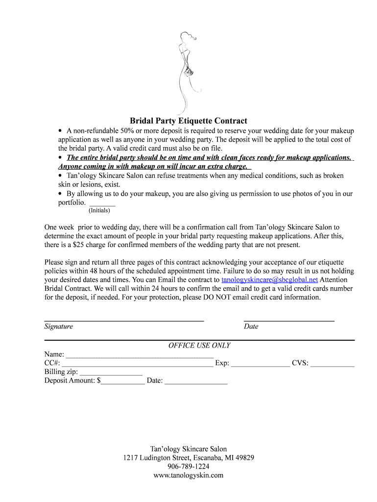 Get the free Bridal Party Etiquette bContractb - Tanology Skin