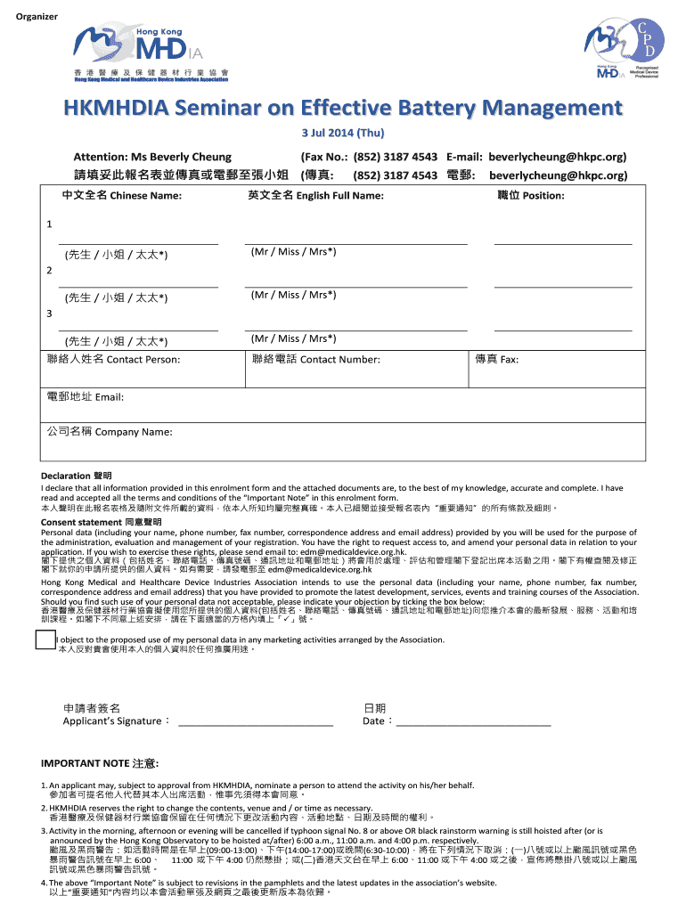 Get the free Organizer HKMHDIA Seminar on Effective Battery Management 3 Jul 2014 (Thu) Introduct...