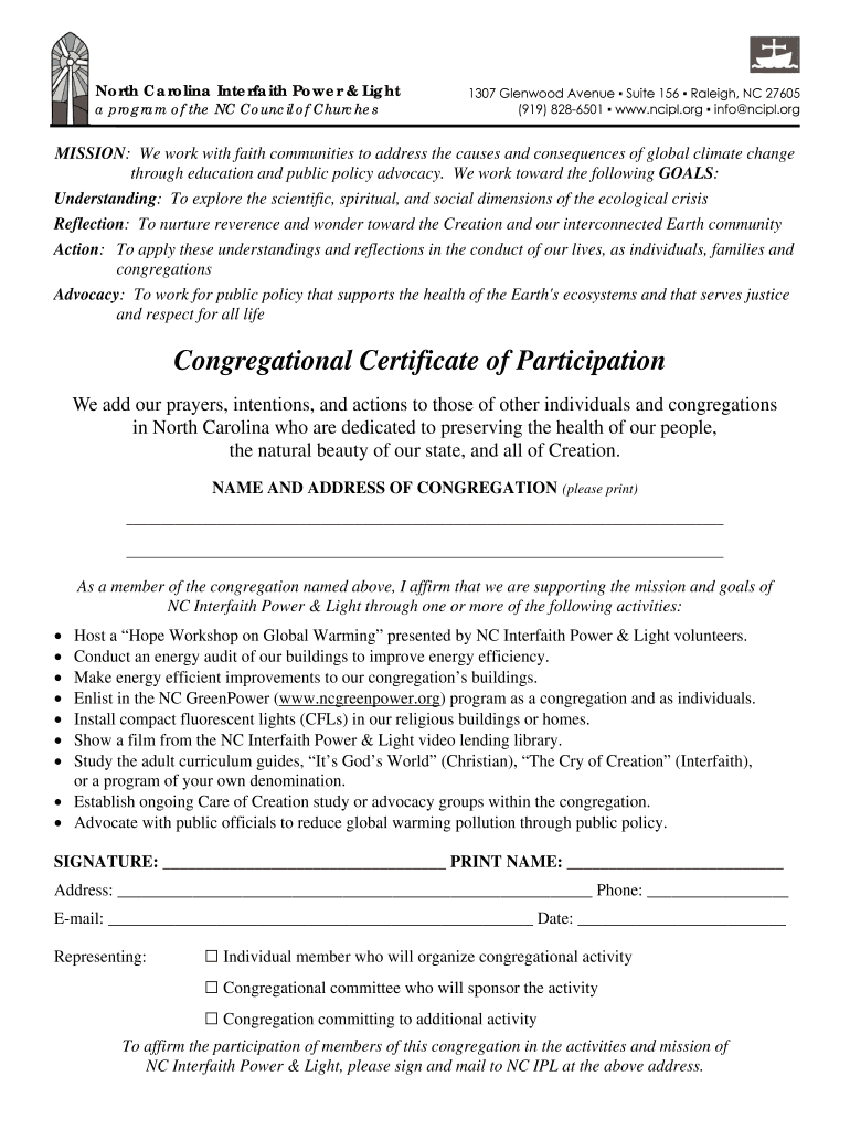 Get the free Certificate of Participation - NC IPL - theregenerationproject