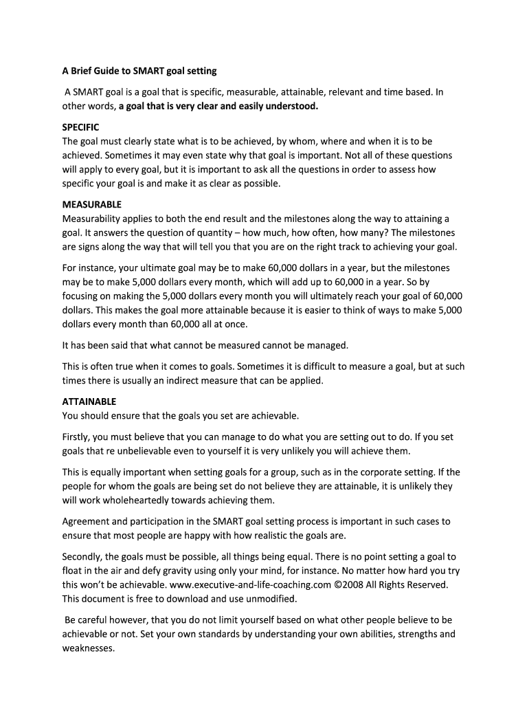 Get the free A Brief Guide to SMART goal setting A SMART goal is a goal that is ... - stbasilvallejo