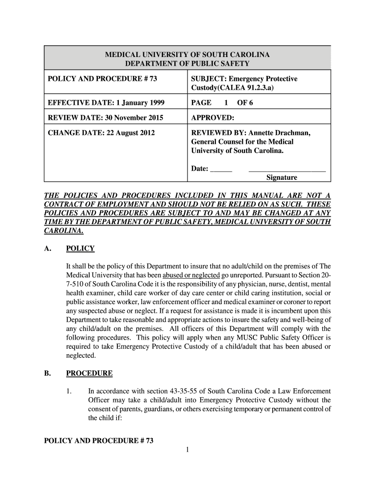 Get the free POLICY AND PROCEDURE # 73 - academicdepartments musc