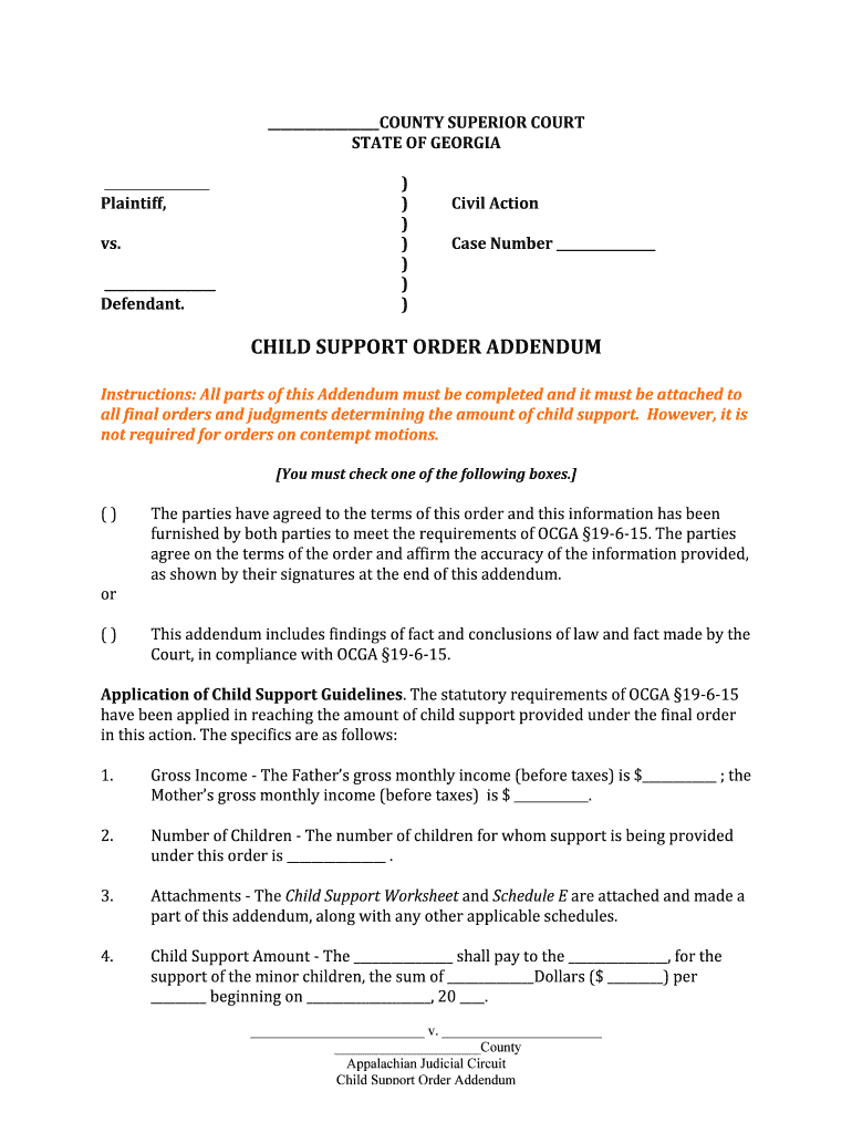 Get the free CHILD SUPPORT ORDER ADDENDUM - Appalachian Family Law bb