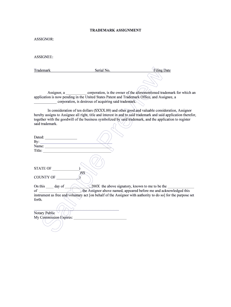 A well-structured Trademark Assignment Agreement contains several essential elements that must be included for it to be effective. Key features of the document encompass various sections such as Assignor, Assignee, Dated, By, Name, Title, and Notary Public. Each section provides clarity about the roles and obligations of the parties.