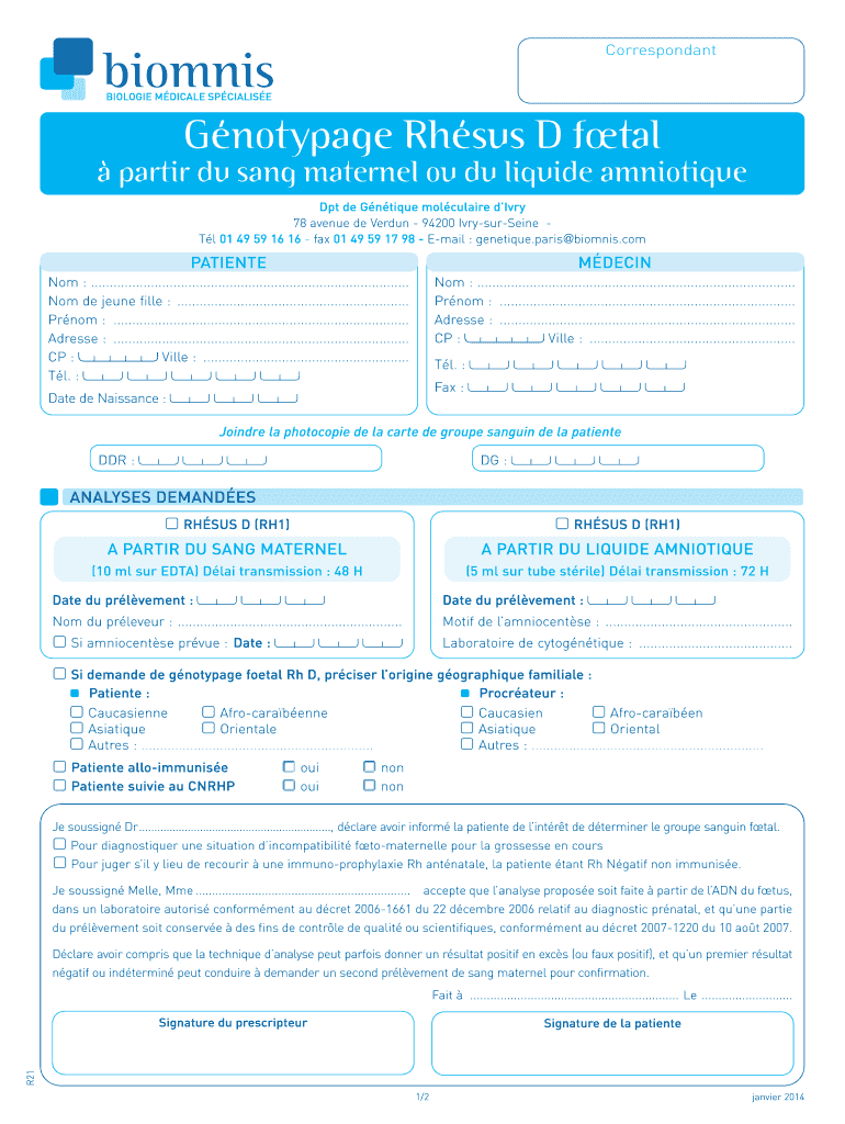 Correspondent Genotype Rhesus D fatal part Du sang maternal of Du liquid antique Dpt de Gntique molecular diary 78 avenue de Verdun 94200 Ivry-sur-Seine Tl 01 49 59 16 16 fax 01 49 59 17 98 Email