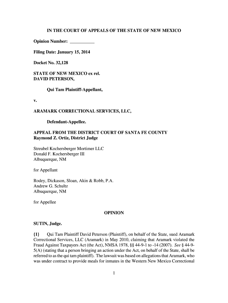 Get the free State of NM ex rel Peterson v Aramark Correctional Services LLC - nmcompcomm