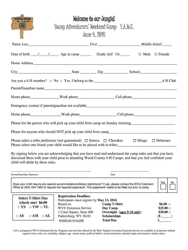 Get the free YAWC Registration Packet - WVU Extension Service - Wood County bb - wood ext wvu