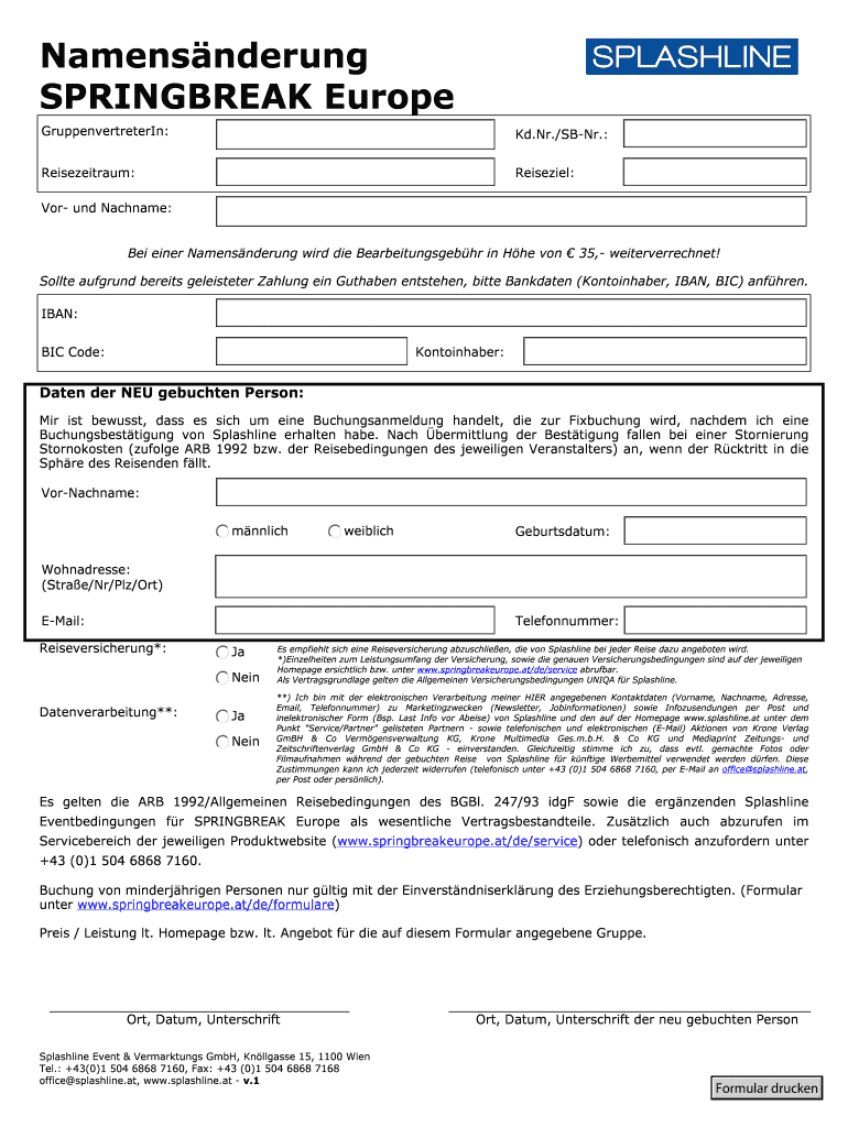 namensnderung springbreak europe muss mit den erforderlichen Informationen ausgefüllt und unterschrieben werden.