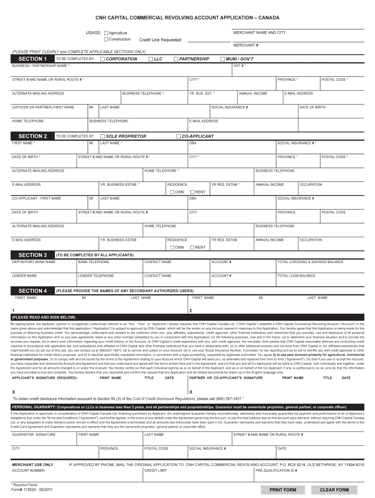 CNH CAPITAL COMMERCIAL REVOLVING ACCOUNT APPLICATION CANADA USAGE: Agriculture MERCHANT NAME AND CITY Construction Credit Line Requested: MERCHANT # (PLEASE PRINT CLEARLY and COMPLETE APPLICABLE SECTIONS