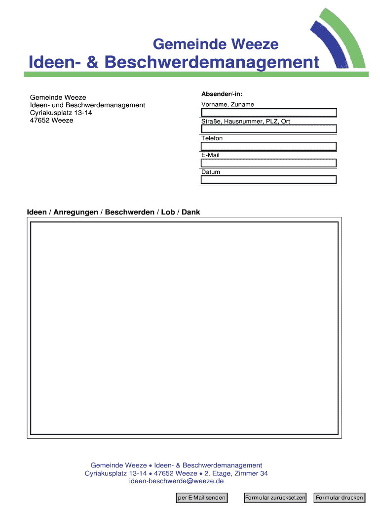 Holen Sie sich kostenlos Ideen und Beschwerden Formularserver - weeze