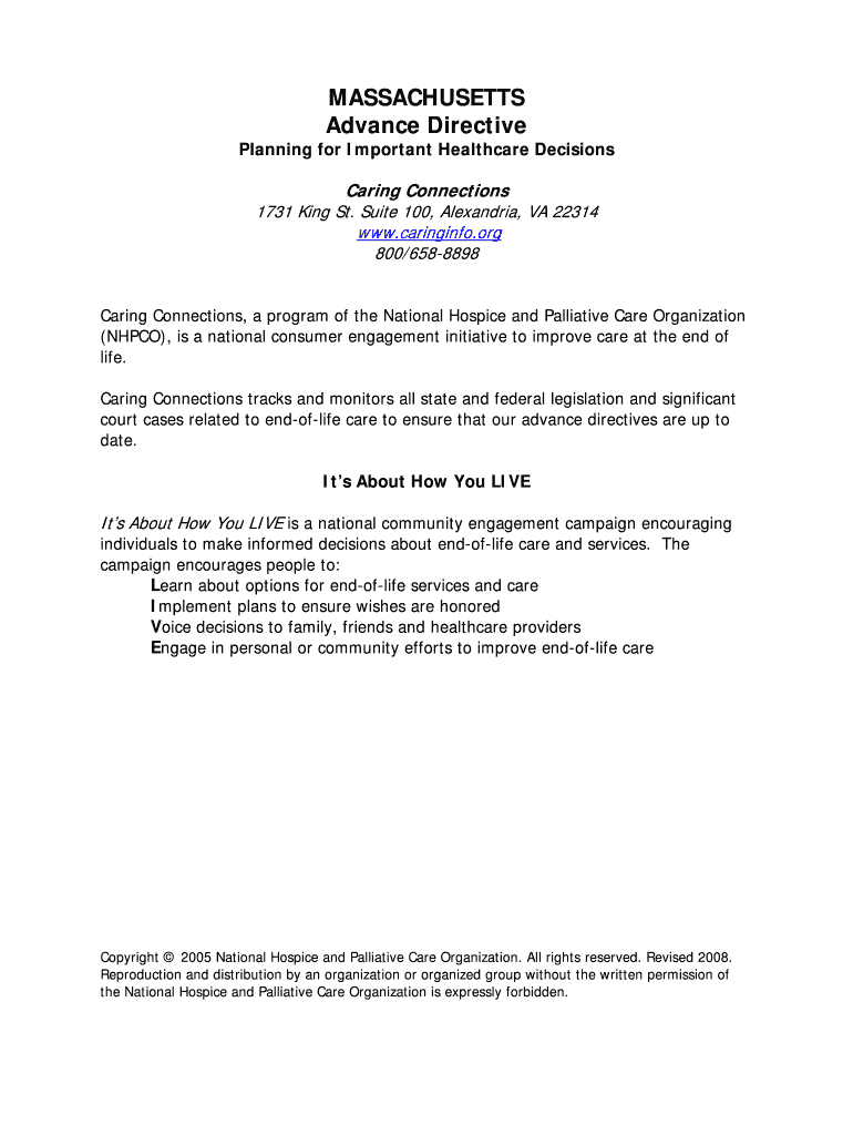 Is there a deadline for submitting the Massachusetts Advance Directive?