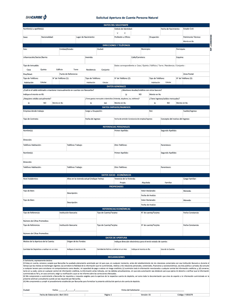 Obtener el gratis Solicitud Apertura de Cuenta Persona Natural - Bancaribe