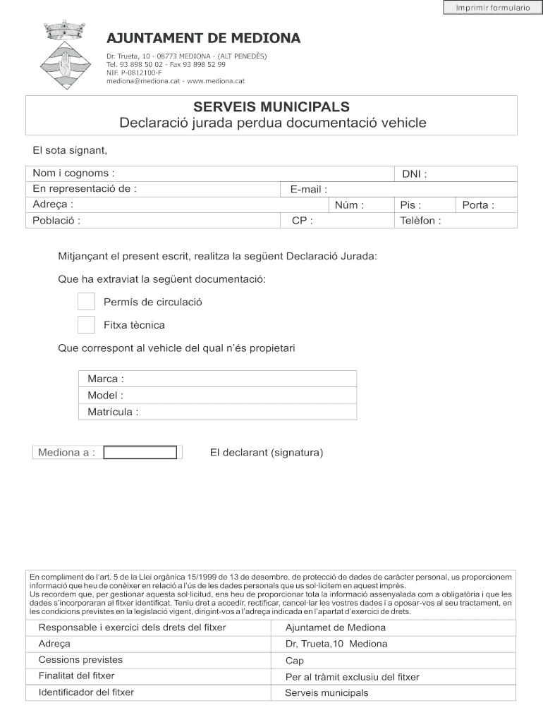 Get the free AJUNTAMENT DE MEDIONA SERVEIS MUNICIPALS Declaraci ... - mediona