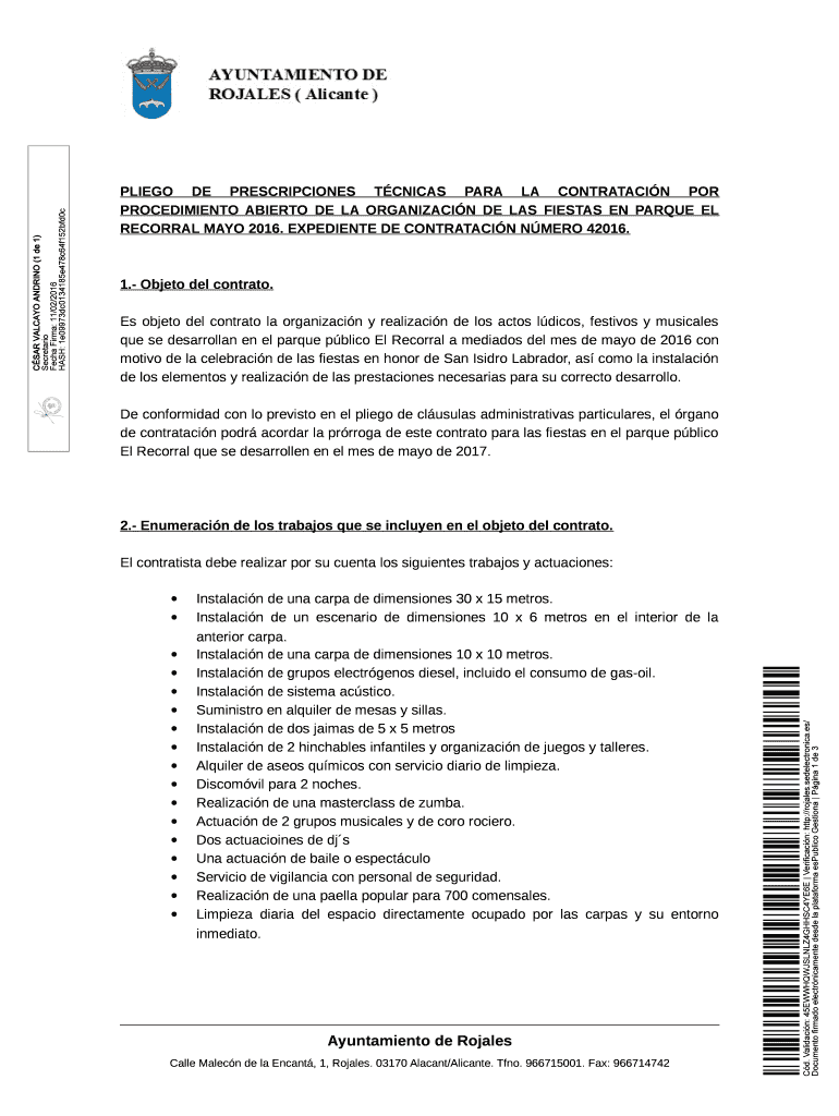 Obtener el gratis Pliego prescripciones tecnicas fiesta en el recorral - Ayuntamiento ... - rojales