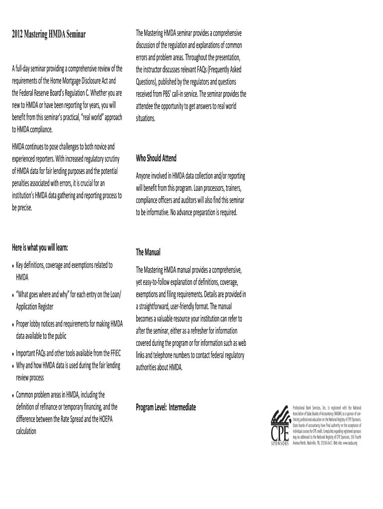 Get the free 2012 Mastering HMDA Seminar - ibat