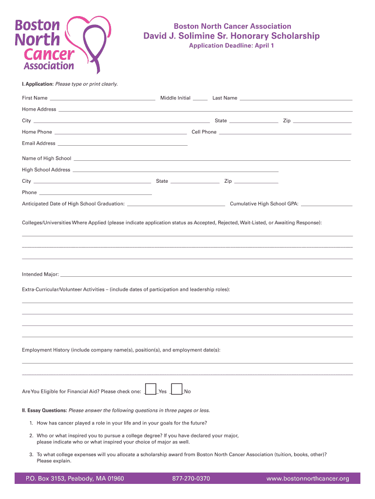 Get the free David J. Solimine Sr. Honorary Scholarship - Boston North Cancer ... - bostonnorthca...