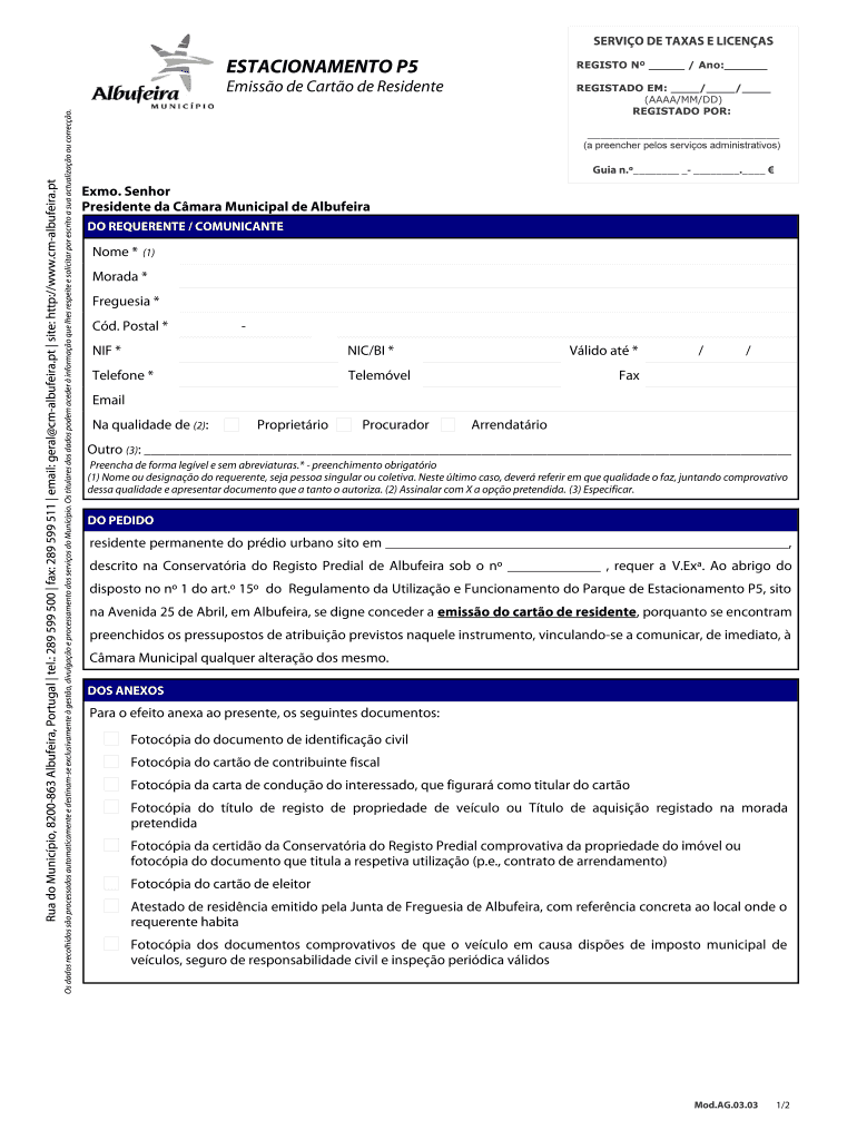 Obtenha o gratuito ESTACIONAMENTO P5 REGISTO N Ano Emisso de Carto de - cm-albufeira